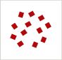 5 colonnes rondes en tissus rouge (diamètres 45cm) placées à 2m les unes des autres.
