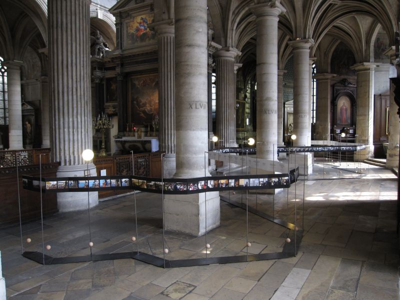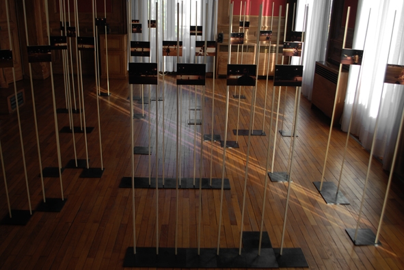 Medium: series of photos, paper, thread, iron tile, terracotta, lights