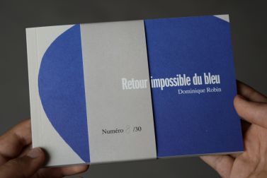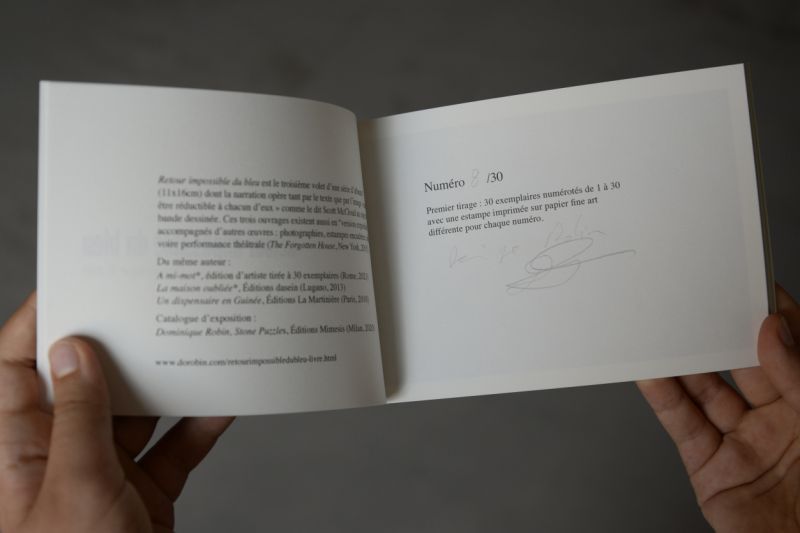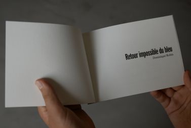 L'exposition "Retour impossible du bleu" présente l'ensemble de ce travail ou images et textes créent une forme de littérature écrite avec les moyens du plasticien : les textes sont comme des images et les images ont cette simplicité proche des signes de l'écriture. C'est ce va-et-vient texte/image qui fait œuvre."