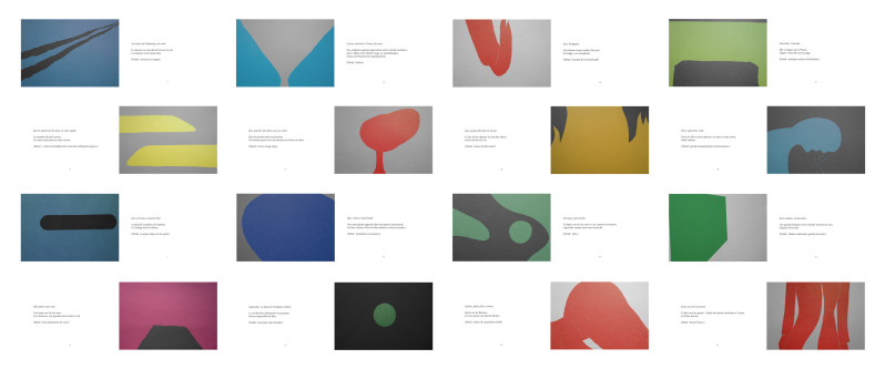 - La seconde série est constituée de 48 estampes également réalisées à partir de papiers découpés. Elles ont été créées en même temps que les 48 textes et forment avec eux la matière du livre d'artiste (extraits). Chaque livre, signé et numéroté, est différent puisque chacun des 30 numéros a un tirage fine art différent.